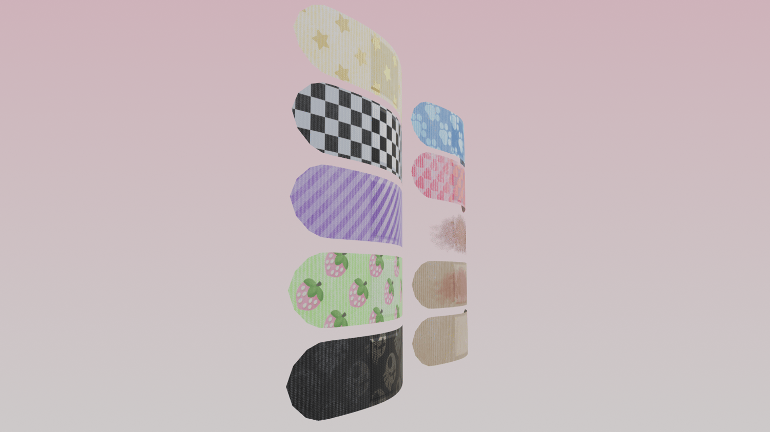 ➤1 Material per band-aid. (1K PBR textures, 21 Colour Options! and one extra Bloody Mask)