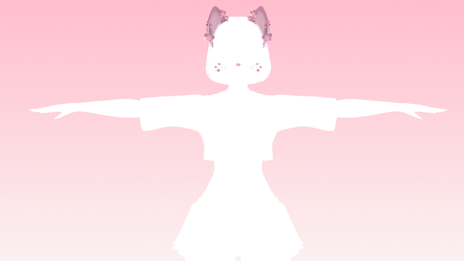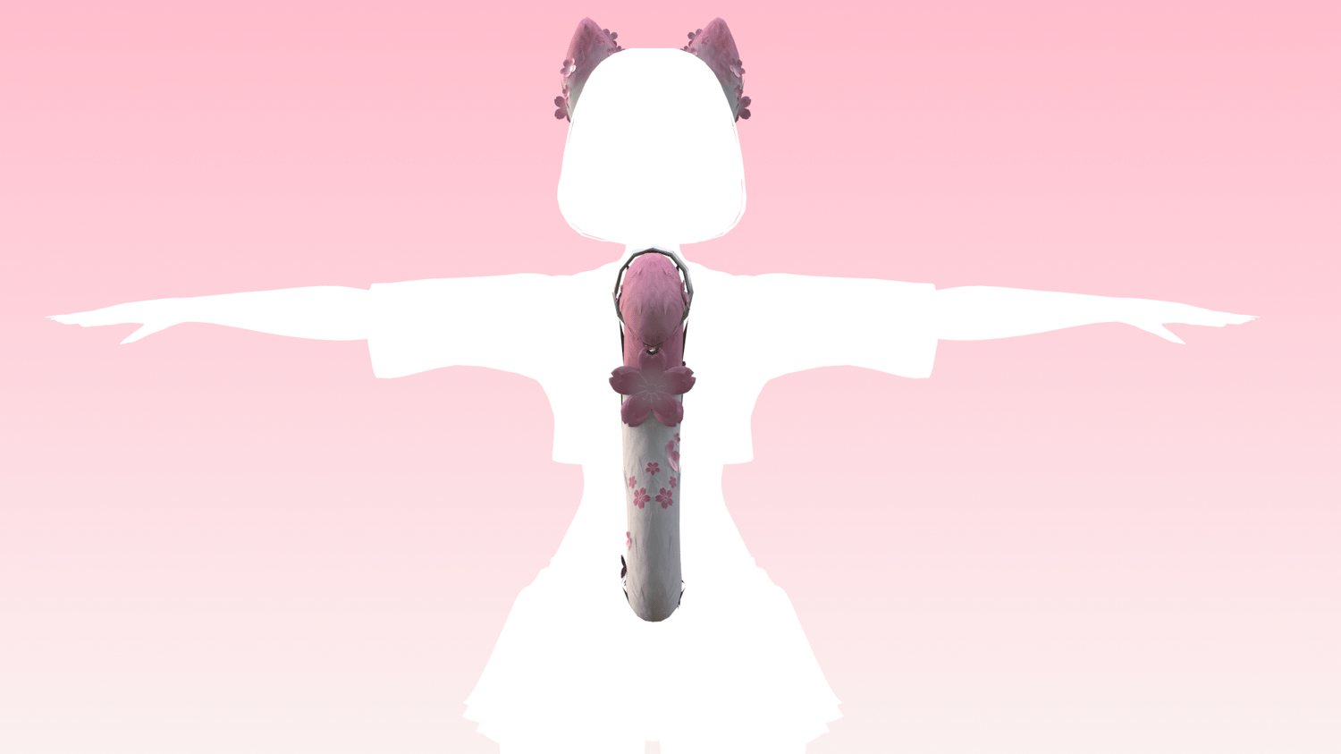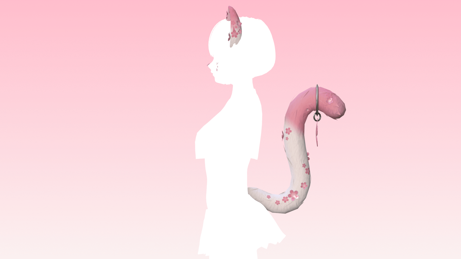 Adorable cat ears and tail with sakura cherry blossom flowers, and cute lil whiskers and flower nose! made in Blender/Substance Painter by me! Modeled and weight painted to Amelia AnimeHead (not included) and Zinfit but should work with any head/base :)