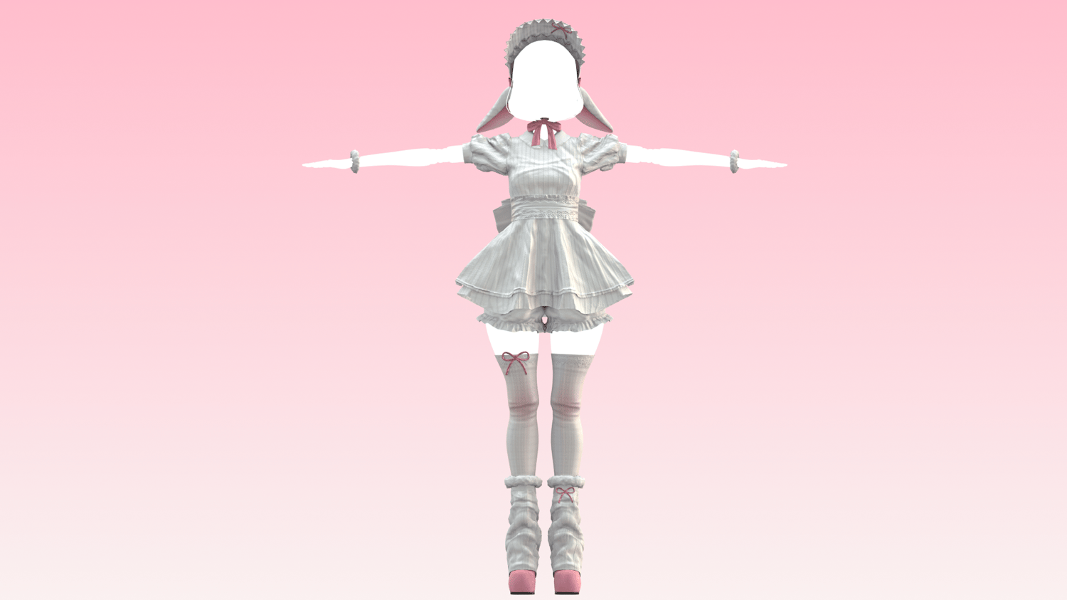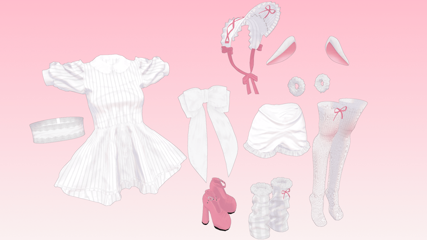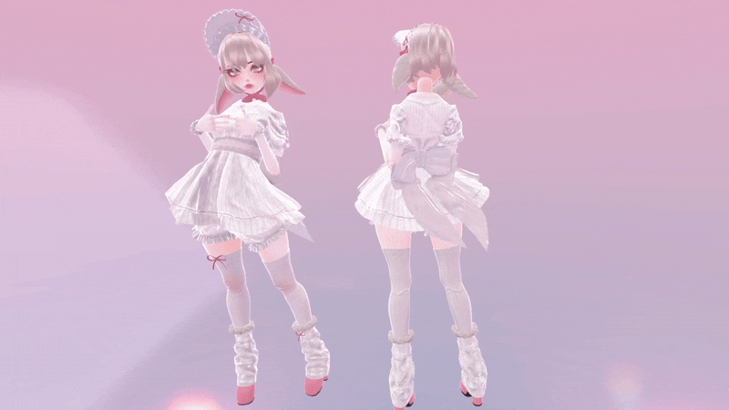 Lovely little lamb set, Bonnet, Ears, Dress, Corset, Back Bow, Wrist Floofs, Bloomers, Socks, Legwarmers, Shoes made in Marvelous Designer, Substance Painter and Blender by me! Modeled and weight painted to Sahara's Doll Base (Not Included). Skirt, Ears, Bonnet Tie, BackBow are rigged for PhysBones and has my Settings in the folder too <3