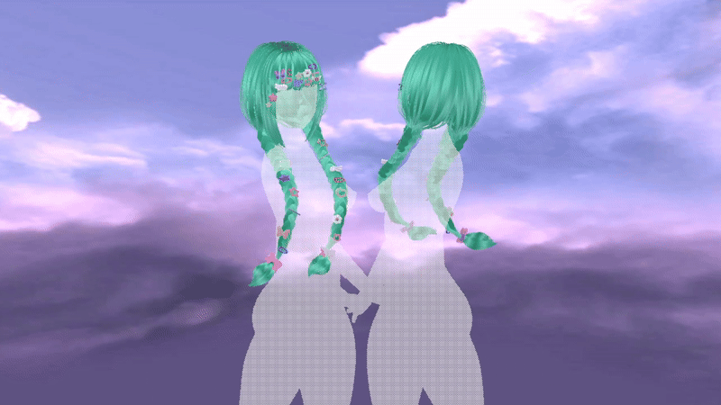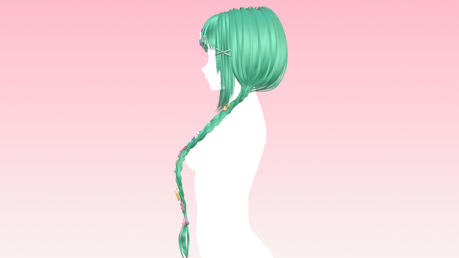 Fun long braids covered in hair clips! Made in Blender/Substance Painter by me! Fully rigged and modeled to VrBase Anime and Amelia AnimeHead (not included)