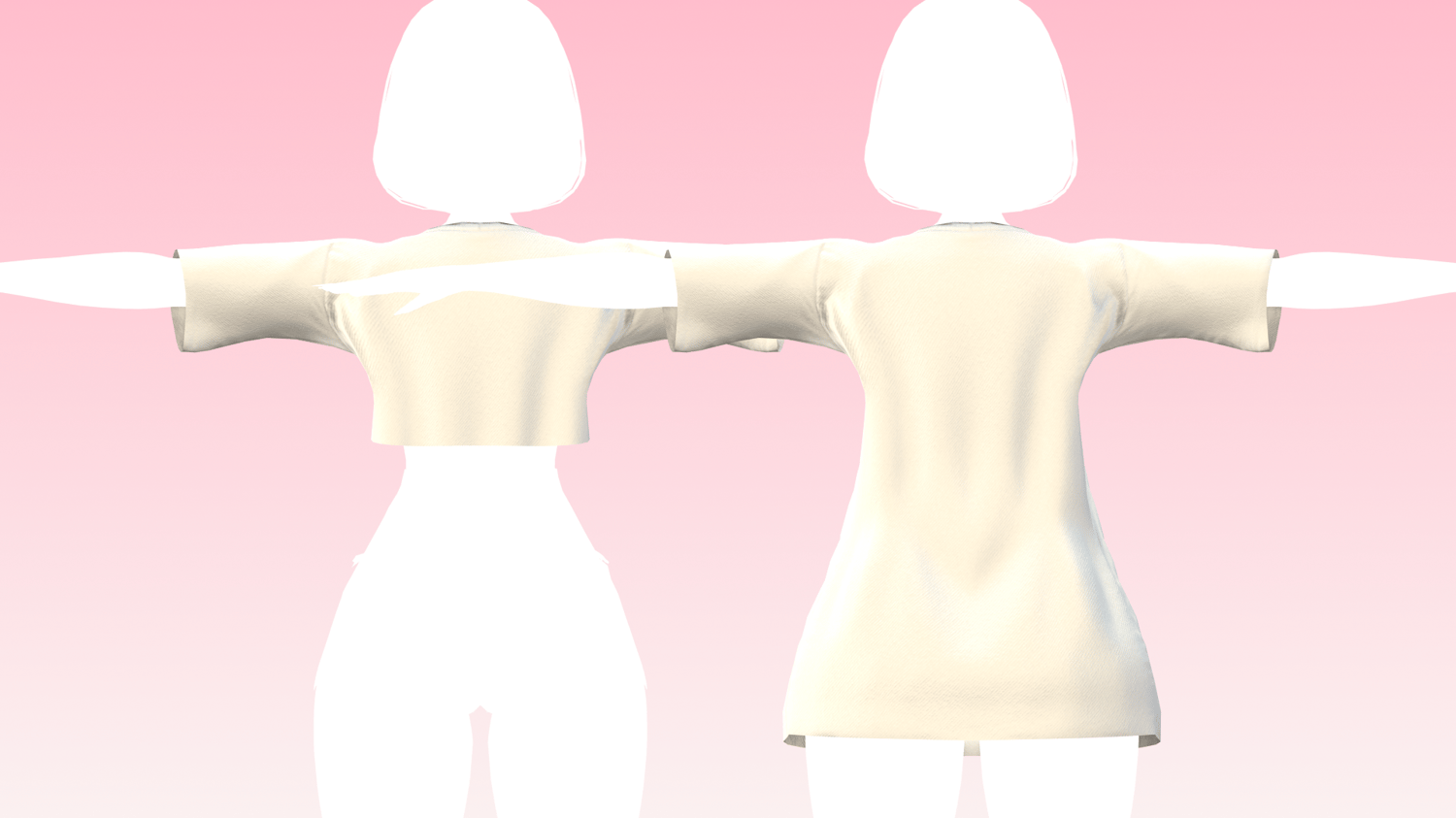 An oversized and cropped tshirt ! made in Marvelous Designer/Blender/Substance Painter by me! Modeled and weight painted to Zinfit (Not included) Some textures done by me and others by the people who entered!