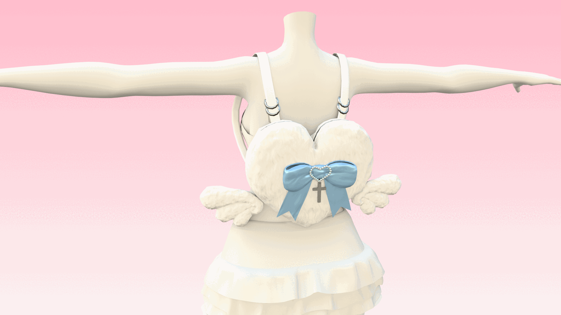 A cute lil backpack with wings and a ribbon on the back! made in Blender/Substance Painter by me! Modeled and weight painted to Zinfit (Not included)