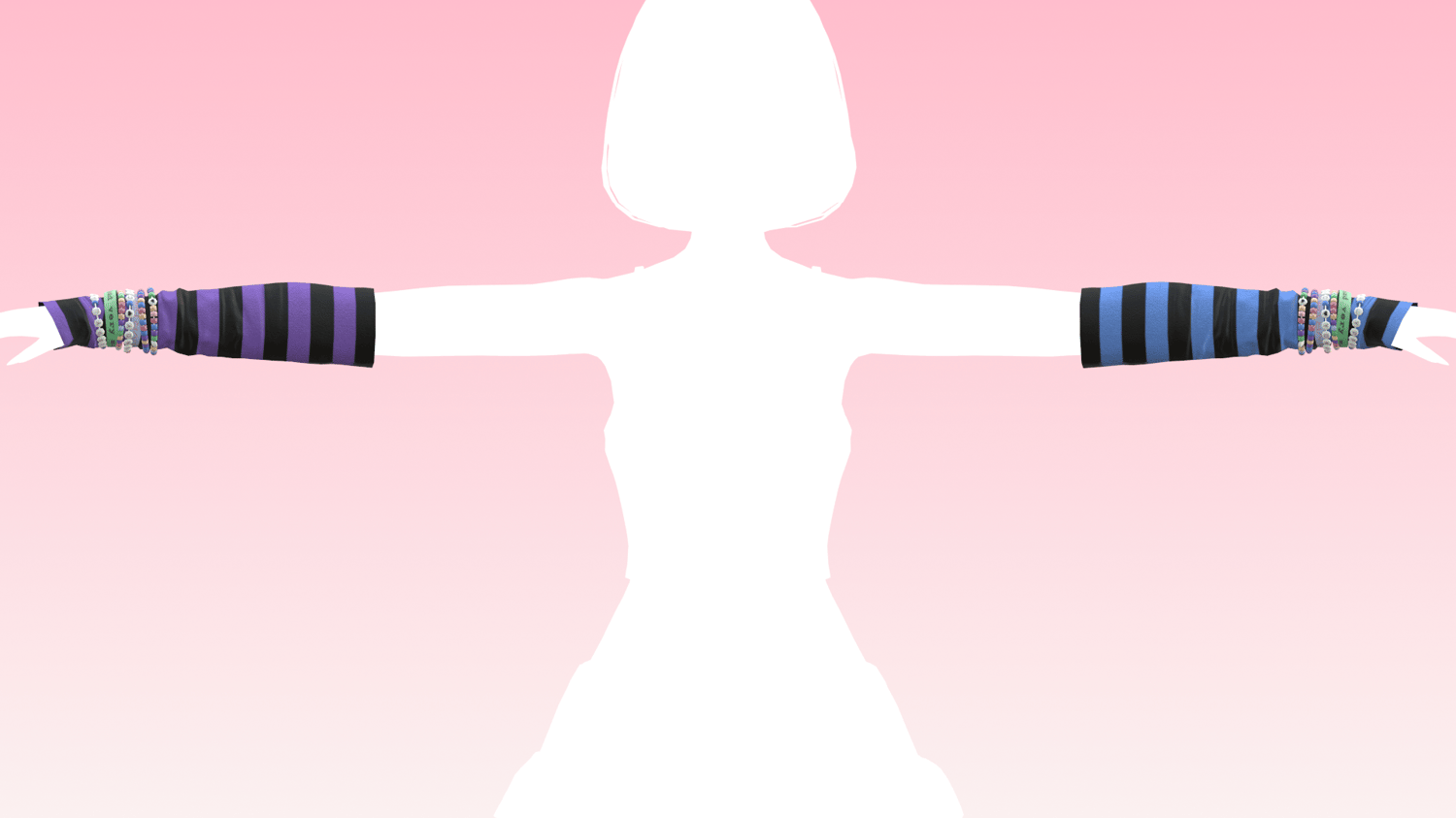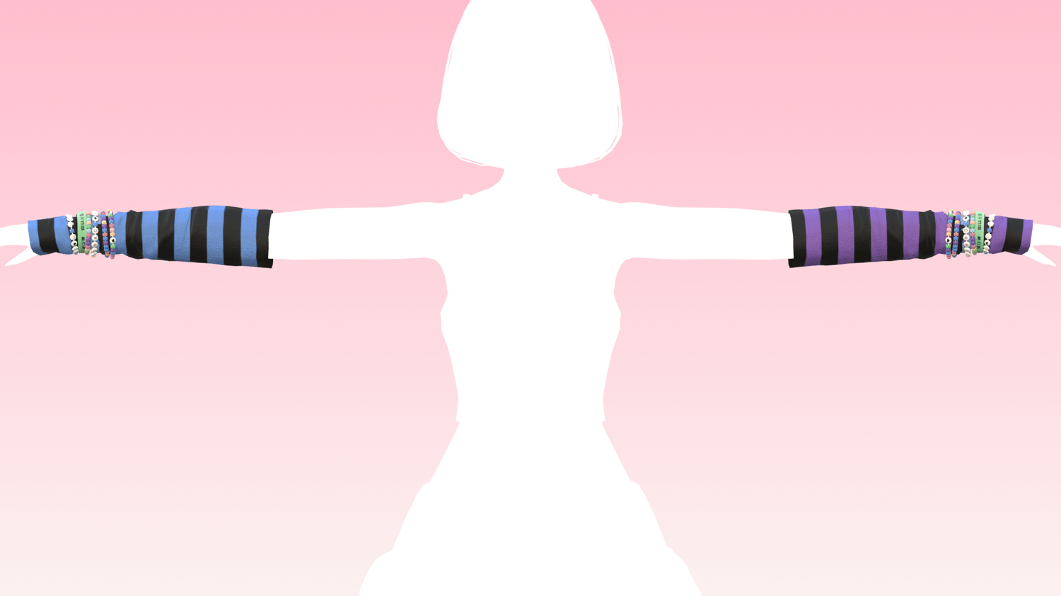 Stripey scene armwarmers with kandi braclets! made in Marvelous Designer/Blender/Substance Painter by me! Modeled and weight painted to Zinfit (Not included)